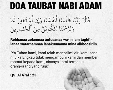 Doa Nabi Adam adalah salah satu doa penting dalam ajaran Islam, yang memiliki makna mendalam dan sejarah yang kaya. Kisah Nabi Adam, manusia pertama, dan doa-doanya menjadi inspirasi bagi umat Islam di seluruh dunia, termasuk di Indonesia, dalam menjalani kehidupan dan memohon ampunan kepada Allah SWT.